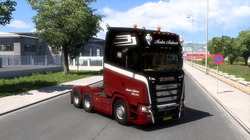 This pack includes Morten Andersen Scania S730 Skin, Morten Andersen skin pack for SRI Lightbox Pack ( Requires SRI Lightbox Pack ) & Morten Andersen Skin For SCS Curtainsider.
